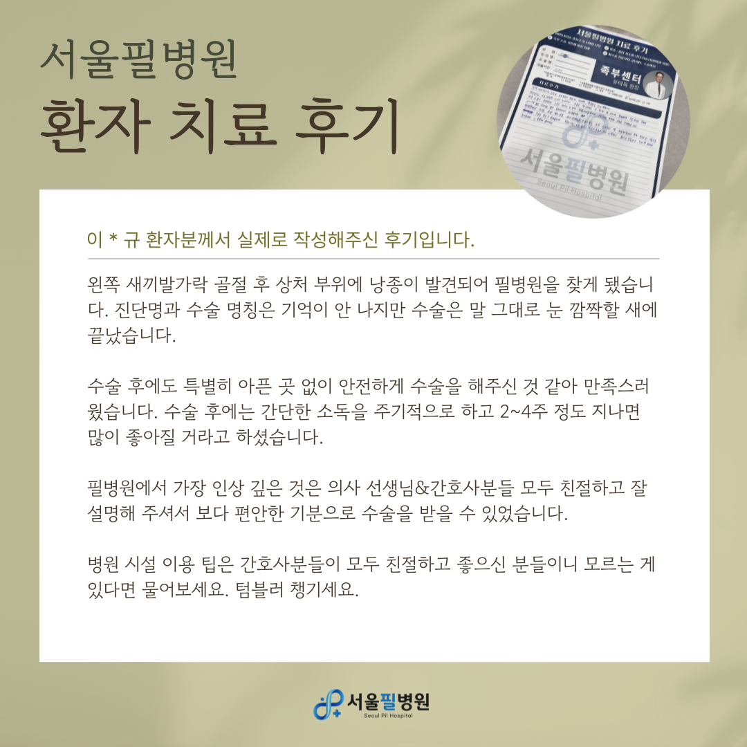 왼쪽 새끼발가락 골절 후 상처 부위에 낭종이 발견되어 필병원을 찾게 됐습니다.