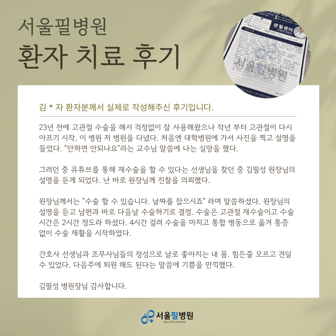 왼쪽 무릎 연골수술 받고 경과가 좋아지고 있습니다. 신뢰가 생기네요.
