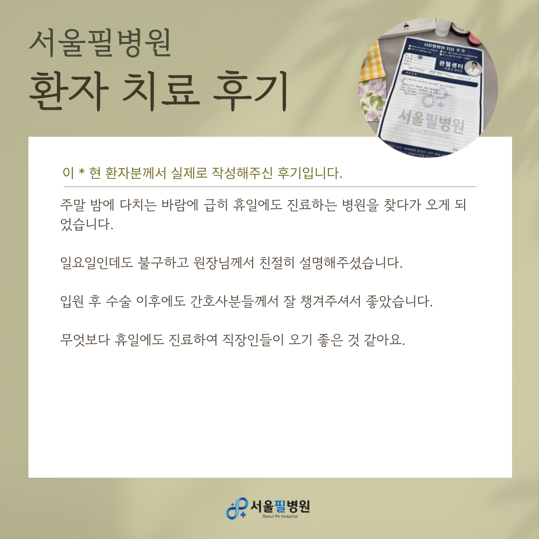 무엇보다 휴일에도 진료하여 직장인들이 오기 좋은 것 같아요.